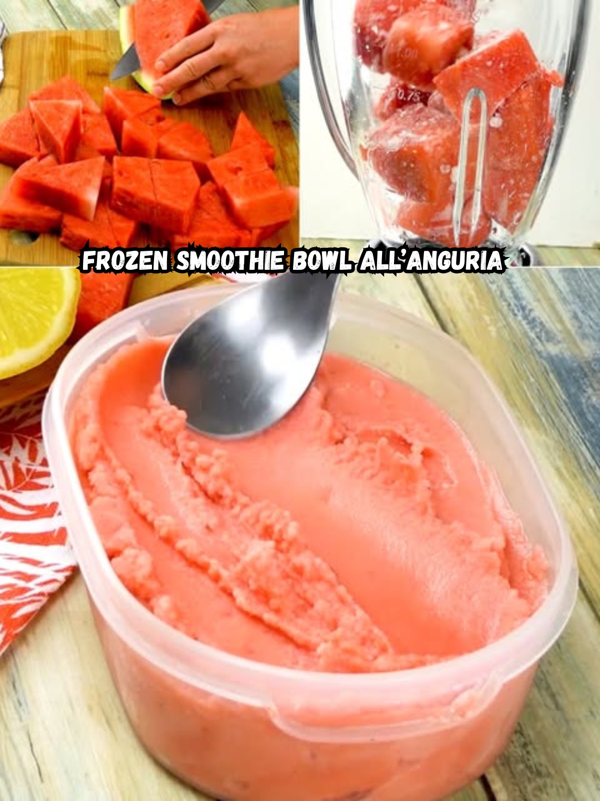 Lo smoothie bowl all’anguria congelata è una preparazione estiva semplice, genuina e incredibilmente rinfrescante. Perfetto per combattere il caldo con gusto, questo smoothie si distingue per la sua cremosità naturale e il suo sapore dolce e dissetante. A base di pochissimi ingredienti – solo anguria, succo di limone e latte – si trasforma in un dessert al cucchiaio ideale per la colazione, la merenda o anche come spuntino leggero dopo un pasto.